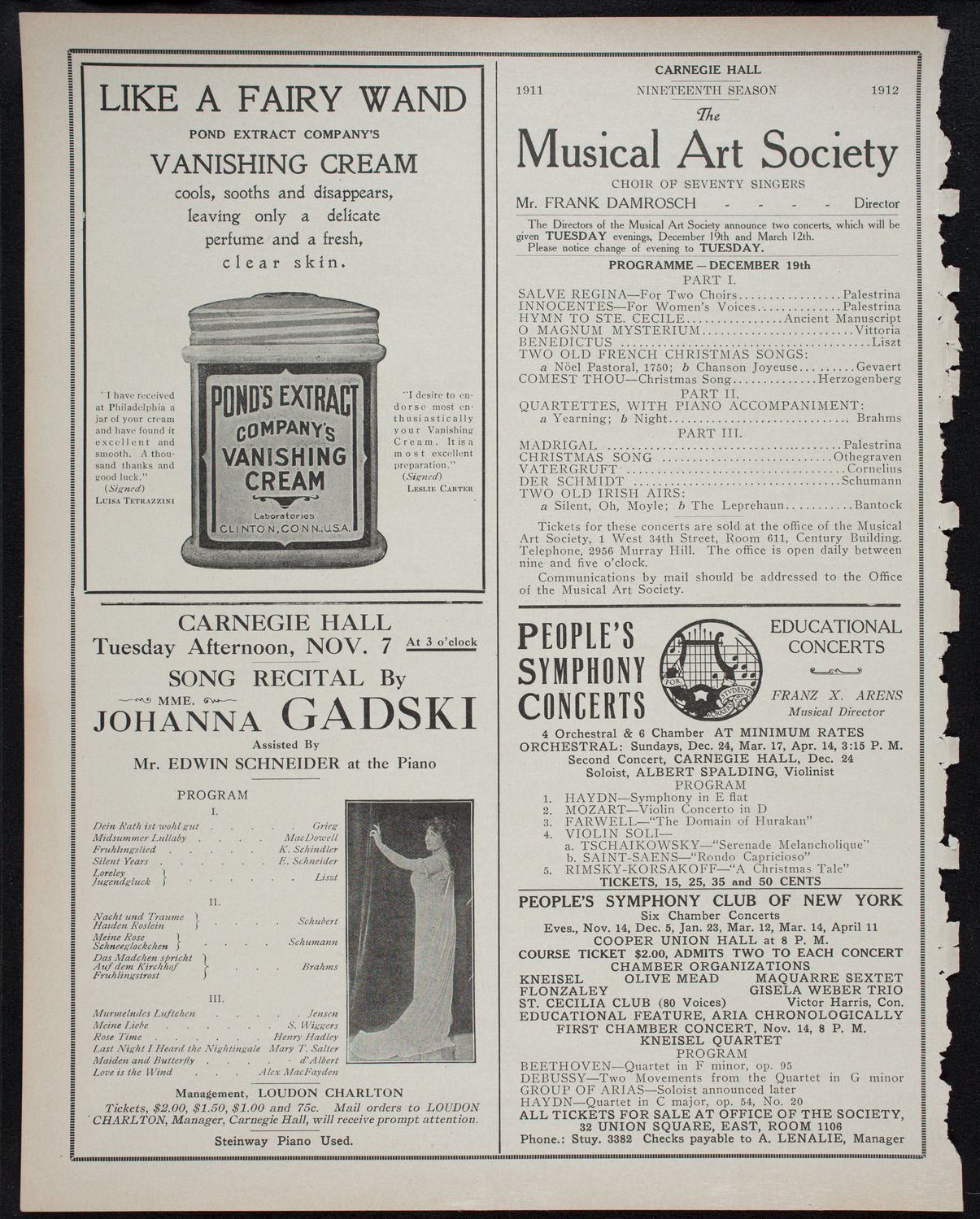 Conceptually similarAllied High Schools of Music Faculty Concert, October 29, 1911, program page 4 Allied High Schools of Music Faculty Concert, October 29, 1911, program page 9 Allied High Schools of Music Faculty Concert, October 29, 1911, program page 2 Allied High Schools of Music Faculty Concert, October 29, 1911, program page 6 Allied High Schools of Music Faculty Concert, October 29, 1911, program page 10 Allied High Schools of Music Faculty Concert, October 29, 1911, program page 5 Allied High Schools of Music Faculty Concert, October 29, 1911, program page 11 Allied High Schools of Music Faculty Concert, October 29, 1911, program page 12 Allied High Schools of Music Faculty Concert, October 29, 1911, program page 1 View MoreYour right to access the Digital Collections is subject to these Terms and Conditions.CH1107022 Allied High Schools of Music Faculty Concert, October 29, 1911, program page 8CONTENT TYPE: program pageSEASON: 1911-1912Date: October 29, 1911 YEAR: 1911 Credit: Courtesy of Carnegie Hall Archives Source name: Carnegie Hall Rose ArchivesDepartment: Rose Museum and ArchivesCollection: Programs CollectionPlace: New York, NY LANGUAGE: English Size: 3696px × 4599px (~48 MB) RIGHTS STATEMENT: NO COPYRIGHT - UNITED STATESCarnegie Hall believes that this item is in the public domain under the laws of the United States, but a determination was not made as to its copyright status under the copyright laws of other countries. The item may not be in the public domain under the laws of other countries. Read full Rights StatementThough not required, if you want to credit us as the source, please use the statement "Courtesy of Carnegie Hall Rose Archives" and provide a link back to the item on our Digital Collections site. Doing so helps us track how our collection is used and helps justify freely releasing even more content in the future. Sunday, October 29, 1911 at 8:15PM SEASON: 1911-1912VENUE: Main HallDownloadRelated materials: View MorePDFComplete program of Allied High Schools of Music Faculty Concert, October 29, 1911 Allied High Schools of Music Faculty Concert, October 29, 1911, program page 12 Allied High Schools of Music Faculty Concert, October 29, 1911, program page 11 Allied High Schools of Music Faculty Concert, October 29, 1911, program page 10 Allied High Schools of Music Faculty Concert, October 29, 1911, program page 9 RELATED: Carnegie Hall Programs