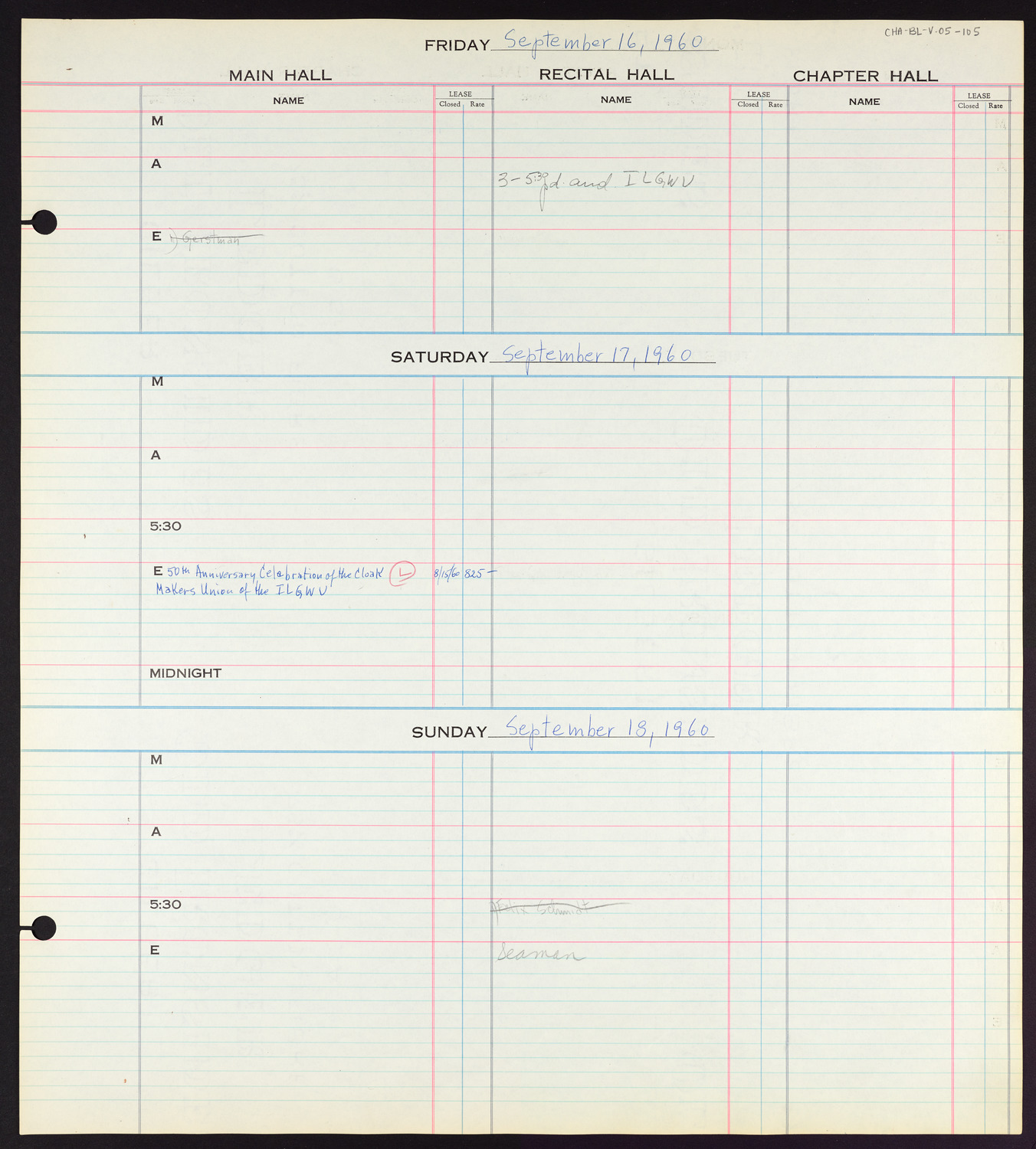 Conceptually similarCarnegie Hall Booking Ledger, volume 5, page 102 Carnegie Hall Booking Ledger, volume 5, page 9 Carnegie Hall Booking Ledger, volume 5, page 106 Carnegie Hall Booking Ledger, volume 5, page 103 Carnegie Hall Booking Ledger, volume 5, page 70 Carnegie Hall Booking Ledger, volume 5, page 68 Carnegie Hall Booking Ledger, volume 5, page 101 Carnegie Hall Booking Ledger, volume 5, page 104 Carnegie Hall Booking Ledger, volume 5, page 107 View MoreYour right to access the Digital Collections is subject to these Terms and Conditions.CH1300703 Carnegie Hall Booking Ledger, volume 5, page 105CONTENT TYPE: booking ledger pageSEASON: 1959-1960Date: September 16, 1960 1960/09/16 to 1960/09/18 YEAR: 1960 Credit: Courtesy of Carnegie Hall Archives Source name: Carnegie Hall Rose ArchivesDepartment: Rose Museum and ArchivesCollection: Booking CollectionPlace: New York, NY Size: 7478px × 8299px (~177 MB) Archives Unique ID: CHA-BL-V05_105 RIGHTS STATEMENT: NO COPYRIGHT - UNITED STATESCarnegie Hall believes that this item is in the public domain under the laws of the United States, but a determination was not made as to its copyright status under the copyright laws of other countries. The item may not be in the public domain under the laws of other countries. Read full Rights StatementThough not required, if you want to credit us as the source, please use the statement "Courtesy of Carnegie Hall Rose Archives" and provide a link back to the item on our Digital Collections site. Doing so helps us track how our collection is used and helps justify freely releasing even more content in the future. DownloadRelated materials: View MorePDFCarnegie Hall Booking Ledger, volume 5 Carnegie Hall Booking Ledger, volume 5, page 114 Carnegie Hall Booking Ledger, volume 5, page 113 Carnegie Hall Booking Ledger, volume 5, page 112 Carnegie Hall Booking Ledger, volume 5, page 111 Carnegie Hall Booking Ledger, volume 5, page 110 RELATED: Carnegie Hall Booking Ledgers