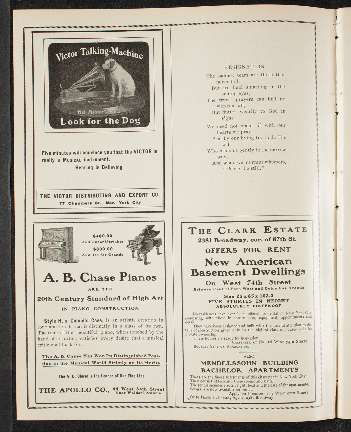 Conceptually similarChristiana University Norwegian Student Chorus, June 18, 1905, program page 12 Christiana University Norwegian Student Chorus, June 18, 1905, program page 9 Christiana University Norwegian Student Chorus, June 18, 1905, program page 3 Christiana University Norwegian Student Chorus, June 18, 1905, program page 5 Christiana University Norwegian Student Chorus, June 18, 1905, program page 10 Christiana University Norwegian Student Chorus, June 18, 1905, program page 11 Christiana University Norwegian Student Chorus, June 18, 1905, program page 1 Christiana University Norwegian Student Chorus, June 18, 1905, program page 8 Christiana University Norwegian Student Chorus, June 18, 1905, program page 6 View MoreYour right to access the Digital Collections is subject to these Terms and Conditions.CH163849 Christiana University Norwegian Student Chorus, June 18, 1905, program page 2Under the auspices of The Norwegian Singing Society of Brooklyn, N.Y. CONTENT TYPE: program pageSEASON: 1904-1905Date: June 18, 1905 YEAR: 1905 Credit: Courtesy of Carnegie Hall Archives Source name: Carnegie Hall Rose ArchivesDepartment: Rose Museum and ArchivesCollection: Programs CollectionPlace: New York, NY LANGUAGE: English Size: 3744px × 4608px (~49 MB) RIGHTS STATEMENT: NO COPYRIGHT - UNITED STATESCarnegie Hall believes that this item is in the public domain under the laws of the United States, but a determination was not made as to its copyright status under the copyright laws of other countries. The item may not be in the public domain under the laws of other countries. Read full Rights StatementThough not required, if you want to credit us as the source, please use the statement "Courtesy of Carnegie Hall Rose Archives" and provide a link back to the item on our Digital Collections site. Doing so helps us track how our collection is used and helps justify freely releasing even more content in the future. Sunday, June 18, 1905 at 3:00PM SEASON: 1904-1905VENUE: Main HallDownloadRelated materials: View MorePDFComplete program of Christiana University Norwegian Student Chorus, June 18, 1905 Christiana University Norwegian Student Chorus, June 18, 1905, program page 12 Christiana University Norwegian Student Chorus, June 18, 1905, program page 11 Christiana University Norwegian Student Chorus, June 18, 1905, program page 10 Christiana University Norwegian Student Chorus, June 18, 1905, program page 9 Christiana University Norwegian Student Chorus, June 18, 1905, program page 8 RELATED: Carnegie Hall Programs
