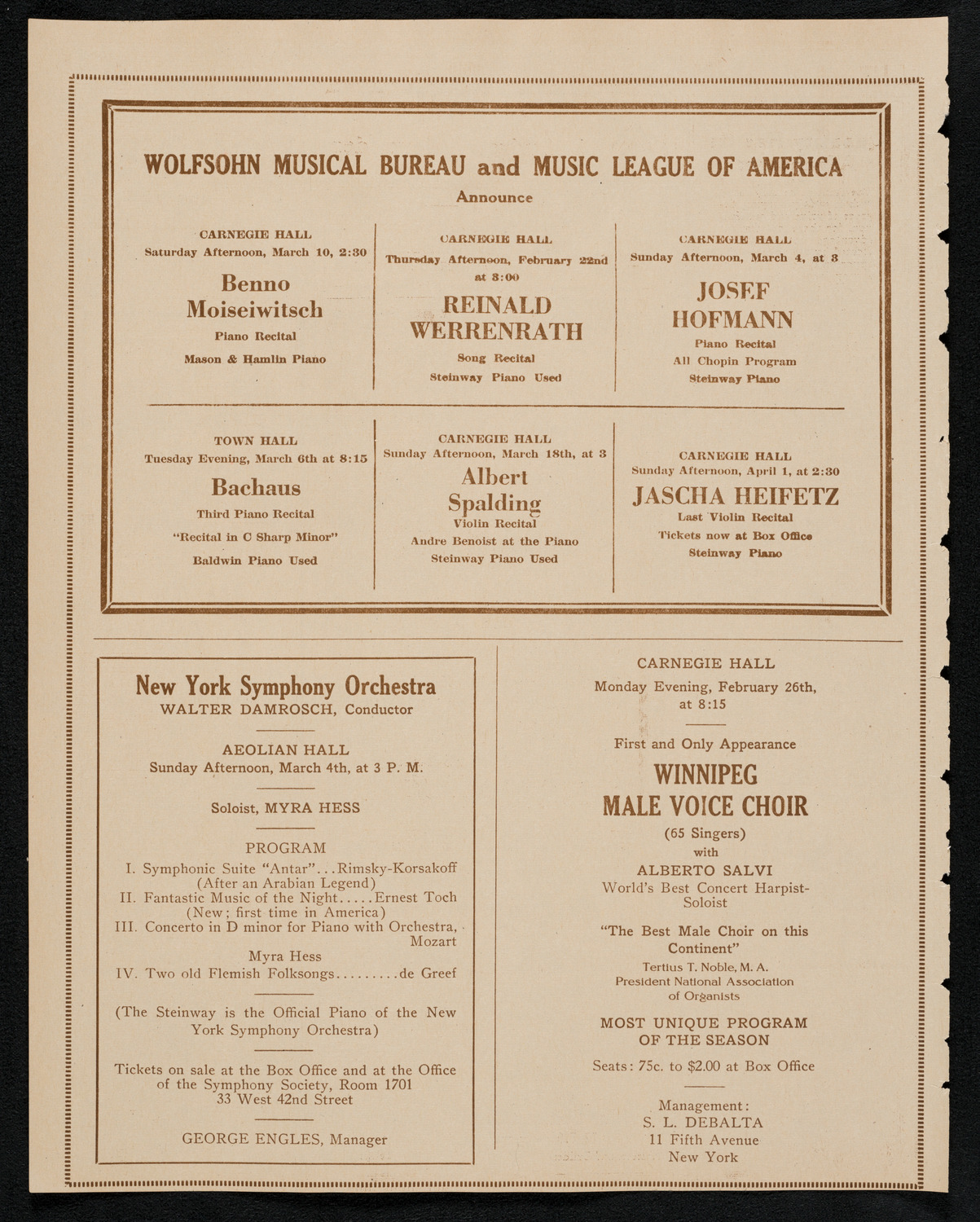 Conceptually similarCity Symphony Orchestra, February 19, 1923, program page 1 City Symphony Orchestra, February 19, 1923, program page 10 City Symphony Orchestra, February 19, 1923, program page 5 City Symphony Orchestra, February 19, 1923, program page 3 City Symphony Orchestra, February 19, 1923, program page 2 City Symphony Orchestra, February 19, 1923, program page 11 City Symphony Orchestra, February 19, 1923, program page 7 City Symphony Orchestra, February 19, 1923, program page 12 City Symphony Orchestra, February 19, 1923, program page 6 View MoreYour right to access the Digital Collections is subject to these Terms and Conditions.CH1170355 City Symphony Orchestra, February 19, 1923, program page 8Manager: Arthur J. Gaines CONTENT TYPE: program pageSEASON: 1922-1923Date: February 19, 1923 YEAR: 1923 Credit: Courtesy of Carnegie Hall Archives Source name: Carnegie Hall Rose ArchivesDepartment: Rose Museum and ArchivesCollection: Programs CollectionPlace: New York, NY LANGUAGE: English Size: 3863px × 4817px (~53 MB) RIGHTS STATEMENT: NO KNOWN COPYRIGHTCarnegie Hall reasonably believes that the item is not restricted by copyright or related rights, but a conclusive determination could not be made.Though not required, if you want to credit us as the source, please use the statement "Courtesy of Carnegie Hall Rose Archives" and provide a link back to the item on our Digital Collections site. Doing so helps us track how our collection is used and helps justify freely releasing even more content in the future. Monday, February 19, 1923 at 8:30PM SEASON: 1922-1923VENUE: Main HallDownloadRelated materials: View MorePDFComplete program of City Symphony Orchestra, February 19, 1923 City Symphony Orchestra, February 19, 1923, program page 12 City Symphony Orchestra, February 19, 1923, program page 11 City Symphony Orchestra, February 19, 1923, program page 10 City Symphony Orchestra, February 19, 1923, program page 9 RELATED: Carnegie Hall Programs