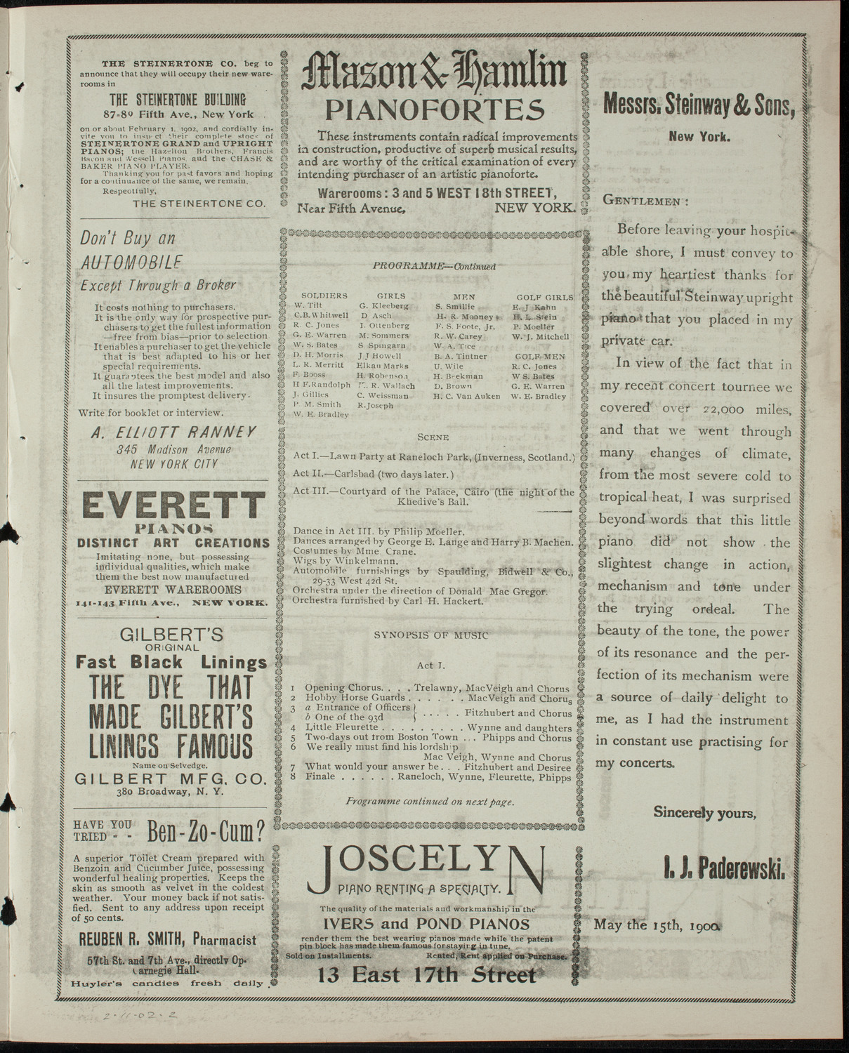 Conceptually similarColumbia University Varsity Show, February 11, 1902, program page 1 Columbia University Varsity Show, February 15, 1902, program page 3 Columbia University Varsity Show, February 12, 1902, program page 3 Columbia University Varsity Show, February 10, 1902, program page 3 Columbia University Varsity Show, February 12, 1902, program page 3 Columbia University Varsity Show, February 13, 1902, program page 3 Columbia University Varsity Show, February 11, 1902, program page 2 Columbia University Varsity Show, February 11, 1902, program page 4 Columbia University Varsity Show, February 14, 1902, program page 3 View MoreYour right to access the Digital Collections is subject to these Terms and Conditions.CH197716 Columbia University Varsity Show, February 11, 1902, program page 3Stated time is approximate. CONTENT TYPE: program pageSEASON: 1901-1902Date: February 11, 1902 YEAR: 1902 Credit: Courtesy of Carnegie Hall Archives Source name: Carnegie Hall Rose ArchivesDepartment: Rose Museum and ArchivesCollection: Programs CollectionPlace: New York, NY LANGUAGE: English Size: 3681px × 4566px (~48 MB) RIGHTS STATEMENT: NO COPYRIGHT - UNITED STATESCarnegie Hall believes that this item is in the public domain under the laws of the United States, but a determination was not made as to its copyright status under the copyright laws of other countries. The item may not be in the public domain under the laws of other countries. Read full Rights StatementThough not required, if you want to credit us as the source, please use the statement "Courtesy of Carnegie Hall Rose Archives" and provide a link back to the item on our Digital Collections site. Doing so helps us track how our collection is used and helps justify freely releasing even more content in the future. Tuesday, February 11, 1902 at 8:00PM SEASON: 1901-1902VENUE: Carnegie LyceumDownloadRelated materials: View MorePDFComplete program of Columbia University Varsity Show, 1902-02-11 In Vanity Fair, A Comic Opera in Three Acts Columbia University Varsity Show, February 11, 1902, program page 4 Columbia University Varsity Show, February 11, 1902, program page 2 Columbia University Varsity Show, February 11, 1902, program page 1 RELATED: Carnegie Hall Programs
