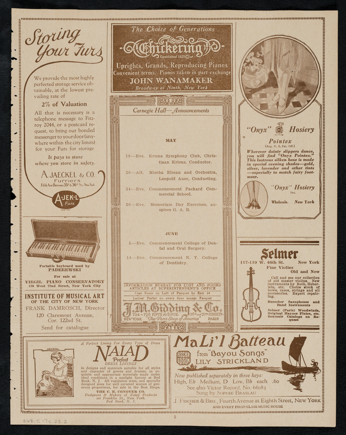 Conceptually similarGraduation: Columbia University College of Pharmacy of the City of New York, May 17, 1923, program page 11 Graduation: Columbia University College of Pharmacy of the City of New York, May 17, 1923, program page 6 Graduation: Columbia University College of Pharmacy of the City of New York, May 17, 1923, program page 9 Graduation: Columbia University College of Pharmacy of the City of New York, May 17, 1923, program page 10 Graduation: Columbia University College of Pharmacy of the City of New York, May 17, 1923, program page 1 Graduation: Columbia University College of Pharmacy of the City of New York, May 17, 1923, program page 8 Graduation: Columbia University College of Pharmacy of the City of New York, May 17, 1923, program page 7 Graduation: Columbia University College of Pharmacy of the City of New York, May 17, 1923, program page 5 Graduation: Columbia University College of Pharmacy of the City of New York, May 17, 1923, program page 2 View MoreYour right to access the Digital Collections is subject to these Terms and Conditions.CH1171426 Graduation: Columbia University College of Pharmacy of the City of New York, May 17, 1923, program page 3Stated time is approximate. CONTENT TYPE: program pageSEASON: 1922-1923Date: May 17, 1923 YEAR: 1923 Credit: Courtesy of Carnegie Hall Archives Source name: Carnegie Hall Rose ArchivesDepartment: Rose Museum and ArchivesCollection: Programs CollectionPlace: New York, NY LANGUAGE: English Size: 3837px × 4831px (~53 MB) RIGHTS STATEMENT: NO KNOWN COPYRIGHTCarnegie Hall reasonably believes that the item is not restricted by copyright or related rights, but a conclusive determination could not be made.Though not required, if you want to credit us as the source, please use the statement "Courtesy of Carnegie Hall Rose Archives" and provide a link back to the item on our Digital Collections site. Doing so helps us track how our collection is used and helps justify freely releasing even more content in the future. Thursday, May 17, 1923 at 8:00PM SEASON: 1922-1923VENUE: Main HallDownloadRelated materials: View MorePDFComplete program of Graduation: Columbia University College of Pharmacy of the City of New York, May 17, 1923 Graduation: Columbia University College of Pharmacy of the City of New York, May 17, 1923, program page 12 Graduation: Columbia University College of Pharmacy of the City of New York, May 17, 1923, program page 11 Graduation: Columbia University College of Pharmacy of the City of New York, May 17, 1923, program page 10 Graduation: Columbia University College of Pharmacy of the City of New York, May 17, 1923, program page 9 Graduation: Columbia University College of Pharmacy of the City of New York, May 17, 1923, program page 8 RELATED: Carnegie Hall Programs