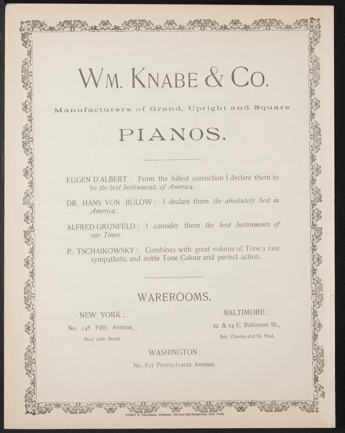 Conceptually similarGrand Wagner Concert/ Benefit: Italian Mission, Church of San Salvatore, April 7, 1893, program page 7 Grand Wagner Concert/ Benefit: Italian Mission, Church of San Salvatore, April 7, 1893, program page 3 Grand Wagner Concert/ Benefit: Italian Mission, Church of San Salvatore, April 7, 1893, program page 2 Grand Wagner Concert/ Benefit: Italian Mission, Church of San Salvatore, April 7, 1893, program page 1 Grand Wagner Concert/ Benefit: Italian Mission, Church of San Salvatore, April 7, 1893, program page 5 Grand Wagner Concert/ Benefit: Italian Mission, Church of San Salvatore, April 7, 1893, program page 6 Grand Wagner Concert/ Benefit: Italian Mission, Church of San Salvatore, April 7, 1893, program page 4 Grand Wagner Concert to Benefit the Orthopaedic Dispensary and Hospital, February 21, 1893, program page 7 Grand Wagner Concert to Benefit the Orthopaedic Dispensary and Hospital, February 21, 1893, program page 8 View MoreYour right to access the Digital Collections is subject to these Terms and Conditions.CH187043 Grand Wagner Concert/ Benefit: Italian Mission, Church of San Salvatore, April 7, 1893, program page 8Grand Wagner Concert, for the benefit of the Italian Mission, Church of San Salvatore, N.Y.All-Wagner Program CONTENT TYPE: program pageSEASON: 1892-1893Date: April 7, 1893 YEAR: 1893 Credit: Courtesy of Carnegie Hall Archives Source name: Carnegie Hall Rose ArchivesDepartment: Rose Museum and ArchivesCollection: Programs CollectionPlace: New York, NY LANGUAGE: English Size: 3709px × 4647px (~49 MB) RIGHTS STATEMENT: NO COPYRIGHT - UNITED STATESCarnegie Hall believes that this item is in the public domain under the laws of the United States, but a determination was not made as to its copyright status under the copyright laws of other countries. The item may not be in the public domain under the laws of other countries. Read full Rights StatementThough not required, if you want to credit us as the source, please use the statement "Courtesy of Carnegie Hall Rose Archives" and provide a link back to the item on our Digital Collections site. Doing so helps us track how our collection is used and helps justify freely releasing even more content in the future. Friday, April 7, 1893 at 8:30PM SEASON: 1892-1893VENUE: Main HallDownloadRelated materials: View MorePDFComplete program of Grand Wagner Concert/ Benefit: Italian Mission, Church of San Salvatore, April 7, 1893 Grand Wagner Concert/ Benefit: Italian Mission, Church of San Salvatore, April 7, 1893, program page 7 Grand Wagner Concert/ Benefit: Italian Mission, Church of San Salvatore, April 7, 1893, program page 6 Grand Wagner Concert/ Benefit: Italian Mission, Church of San Salvatore, April 7, 1893, program page 5 Grand Wagner Concert/ Benefit: Italian Mission, Church of San Salvatore, April 7, 1893, program page 4 RELATED: Carnegie Hall Programs