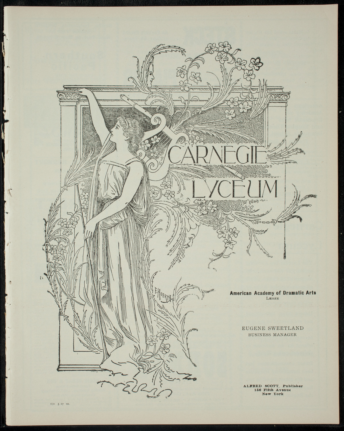 Conceptually similarLewis Nathaniel Shields Art Club Concert and Recitations, May 17, 1905, program page 3 Lewis Nathaniel Shields Art Club Concert and Recitations, May 17, 1905, program page 2 Lewis Nathaniel Shields Art Club Concert and Recitations, May 17, 1905, program page 4 Junior League Dramatic and Musical Entertainment, May 2, 1905, program page 1 Concert by Shields Art Club, February 2, 1904, program page 1 Charles Heinline's Sixth Annual Banjo, Mandolin and Guitar Concert, March 9, 1905, program page 1 Concert by Shields Art Club, February 2, 1904, program page 3 Concert by Shields Art Club, February 2, 1904, program page 4 Junior League Dramatic and Musical Entertainment, May 2, 1905, program page 4 View MoreYour right to access the Digital Collections is subject to these Terms and Conditions.CH1101231 Lewis Nathaniel Shields Art Club Concert and Recitations, May 17, 1905, program page 1CONTENT TYPE: program pageSEASON: 1904-1905Date: May 17, 1905 YEAR: 1905 Credit: Courtesy of Carnegie Hall Archives Source name: Carnegie Hall Rose ArchivesDepartment: Rose Museum and ArchivesCollection: Programs CollectionPlace: New York, NY LANGUAGE: English Size: 3628px × 4537px (~47 MB) RIGHTS STATEMENT: NO COPYRIGHT - UNITED STATESCarnegie Hall believes that this item is in the public domain under the laws of the United States, but a determination was not made as to its copyright status under the copyright laws of other countries. The item may not be in the public domain under the laws of other countries. Read full Rights StatementThough not required, if you want to credit us as the source, please use the statement "Courtesy of Carnegie Hall Rose Archives" and provide a link back to the item on our Digital Collections site. Doing so helps us track how our collection is used and helps justify freely releasing even more content in the future. Wednesday, May 17, 1905 at 8:30PM SEASON: 1904-1905VENUE: Carnegie LyceumDownloadRelated materials: View MorePDFComplete program of Lewis Nathaniel Shields Art Club Concert and Recitations, May 17, 1905 Lewis Nathaniel Shields Art Club Concert and Recitations, May 17, 1905, program page 4 Lewis Nathaniel Shields Art Club Concert and Recitations, May 17, 1905, program page 3 Lewis Nathaniel Shields Art Club Concert and Recitations, May 17, 1905, program page 2 Recitation: The Birth of the Opal, by Ella Wheeler Wilcox RELATED: Carnegie Hall Programs