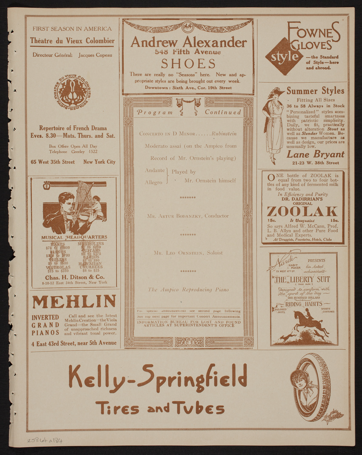 Conceptually similarMetropolitan Opera House Orchestra, June 4, 1918, program page 4 Metropolitan Opera House Orchestra, June 4, 1918, program page 9 Metropolitan Opera House Orchestra, June 4, 1918, program page 8 Metropolitan Opera House Orchestra, June 4, 1918, program page 12 Metropolitan Opera House Orchestra, June 4, 1918, program page 1 Metropolitan Opera House Orchestra, June 4, 1918, program page 10 Metropolitan Opera House Orchestra, June 4, 1918, program page 11 Metropolitan Opera House Orchestra, June 4, 1918, program page 3 Metropolitan Opera House Orchestra, June 4, 1918, program page 6 View MoreYour right to access the Digital Collections is subject to these Terms and Conditions.CH1148073 Metropolitan Opera House Orchestra, June 4, 1918, program page 7According to note in program, the first movement of the Rubinstein Concerto was played on an Ampico Reproducing Piano from a recording made by Leo Ornstein. A review in the New York Sun indicates "[t]he purpose of the recital was to demonstrate the qualities of the Ampico and the purpose was remarkably successful."The sun. [volume] (New York [N.Y.]), 05 June 1918. Chronicling America: Historic American Newspapers. Lib. of Congress. <a rel="noopener noreferrer" class="external" href="https://chroniclingamerica.loc.gov/lccn/sn83030431/1918-06-05/ed-1/seq-7/" target="_blank">Link to review (column 2)</a> CONTENT TYPE: program pageSEASON: 1917-1918Date: June 4, 1918 YEAR: 1918 Credit: Courtesy of Carnegie Hall Archives Source name: Carnegie Hall Rose ArchivesDepartment: Rose Museum and ArchivesCollection: Programs CollectionPlace: New York, NY LANGUAGE: English Size: 3459px × 4345px (~42 MB) RIGHTS STATEMENT: NO COPYRIGHT - UNITED STATESCarnegie Hall believes that this item is in the public domain under the laws of the United States, but a determination was not made as to its copyright status under the copyright laws of other countries. The item may not be in the public domain under the laws of other countries. Read full Rights StatementThough not required, if you want to credit us as the source, please use the statement "Courtesy of Carnegie Hall Rose Archives" and provide a link back to the item on our Digital Collections site. Doing so helps us track how our collection is used and helps justify freely releasing even more content in the future. Tuesday, June 4, 1918 at 3:00PM SEASON: 1917-1918VENUE: Main HallDownloadRelated materials: View MorePDFComplete program of Metropolitan Opera House Orchestra, June 4, 1918 Metropolitan Opera House Orchestra, June 4, 1918, program page 12 Metropolitan Opera House Orchestra, June 4, 1918, program page 11 Metropolitan Opera House Orchestra, June 4, 1918, program page 10 Metropolitan Opera House Orchestra, June 4, 1918, program page 9 Metropolitan Opera House Orchestra, June 4, 1918, program page 8 RELATED: Carnegie Hall Programs