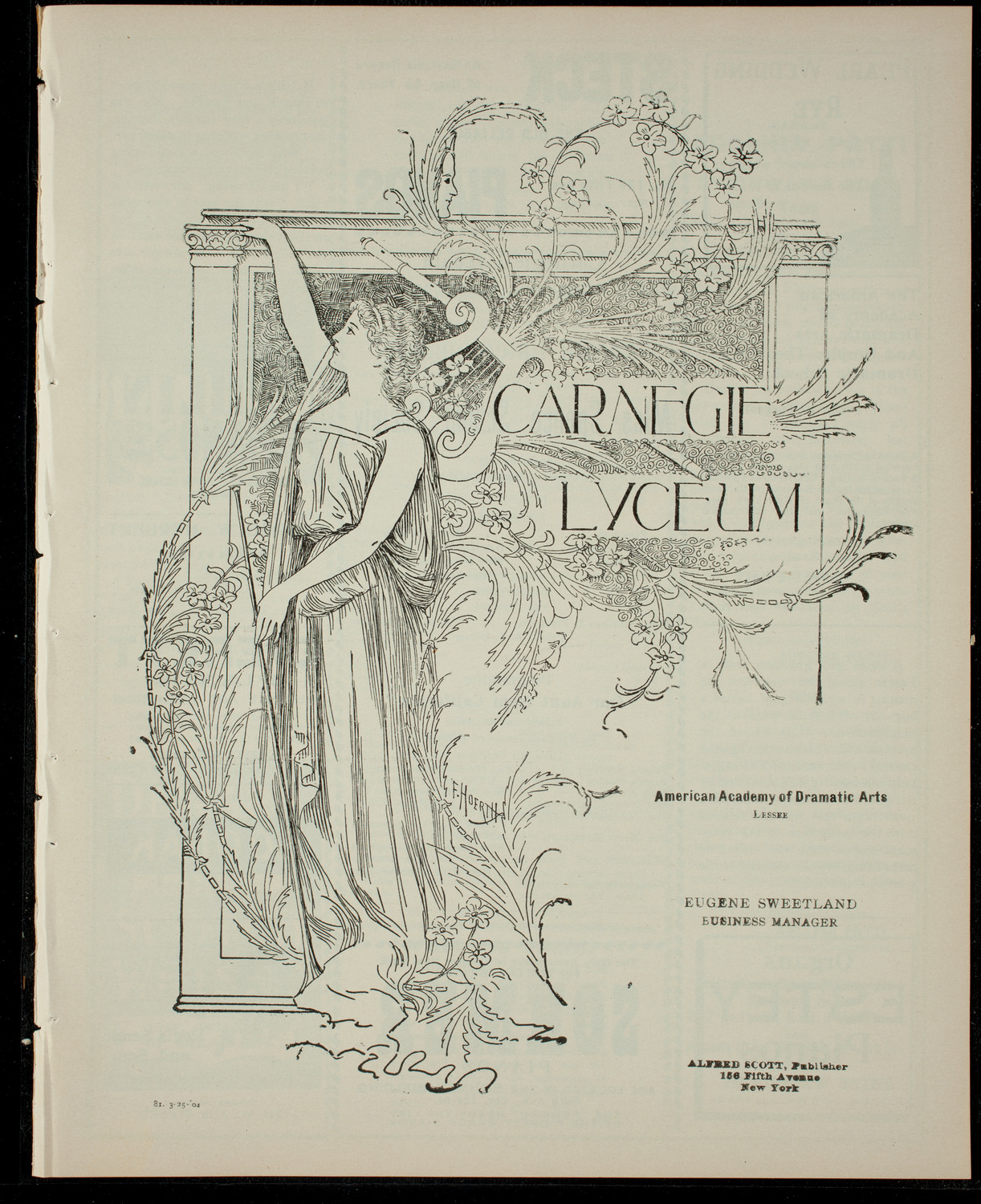 Conceptually similarMiss Spence School Society/ Benefit: Class for Crippled Children, March 25, 1904, program page 1 Miss Spence School Society/ Benefit: Class for Crippled Children, March 25, 1904, program page 4 Miss Spence School Society/ Benefit: Class for Crippled Children, March 25, 1904, program page 3 Miss Spence School Society/ Benefit: Class for Crippled Children, March 25, 1904, program page 2 Miss Spence School Society/ Benefit: Class for Crippled Children, March 25, 1904, program page 4 Miss Spence School Society/ Benefit: Class for Crippled Children, March 25, 1904, program page 2 Miss Spence School Society/ Benefit: Class for Crippled Children, March 25, 1904, program page 3 Miss Spence's School Society: Annual Entertainment ot Benefit A Class for Crippled Children, March 20, 1903, program page 1 Miss Spence's School Society: Annual Entertainment ot Benefit A Class for Crippled Children, March 20, 1903, program page 3 View MoreYour right to access the Digital Collections is subject to these Terms and Conditions.CH1100555 Miss Spence School Society/ Benefit: Class for Crippled Children, March 25, 1904, program page 1Annual Entertainment of Miss Spence School Society, for the benefit of A Class for Crippled ChildrenStated time is approximate; please see program for complete list of student performers. CONTENT TYPE: program pageSEASON: 1903-1904Date: March 25, 1904 YEAR: 1904 Credit: Courtesy of Carnegie Hall Archives Source name: Carnegie Hall Rose ArchivesDepartment: Rose Museum and ArchivesCollection: Programs CollectionPlace: New York, NY LANGUAGE: English Size: 3668px × 4504px (~47 MB) RIGHTS STATEMENT: NO COPYRIGHT - UNITED STATESCarnegie Hall believes that this item is in the public domain under the laws of the United States, but a determination was not made as to its copyright status under the copyright laws of other countries. The item may not be in the public domain under the laws of other countries. Read full Rights StatementThough not required, if you want to credit us as the source, please use the statement "Courtesy of Carnegie Hall Rose Archives" and provide a link back to the item on our Digital Collections site. Doing so helps us track how our collection is used and helps justify freely releasing even more content in the future. Friday, March 25, 1904 at 3:00PM SEASON: 1903-1904VENUE: Carnegie LyceumDownloadRelated materials: View MorePDFComplete program of Miss Spence School Society/ Benefit: Class for Crippled Children, March 25, 1904 Miss Spence School Society/ Benefit: Class for Crippled Children, March 25, 1904, program page 4 Miss Spence School Society/ Benefit: Class for Crippled Children, March 25, 1904, program page 3 Miss Spence School Society/ Benefit: Class for Crippled Children, March 25, 1904, program page 2 Lieder ohne Worte, Op. 62: 6. Allegretto gracioso, "Frühlingslied" RELATED: Carnegie Hall Programs