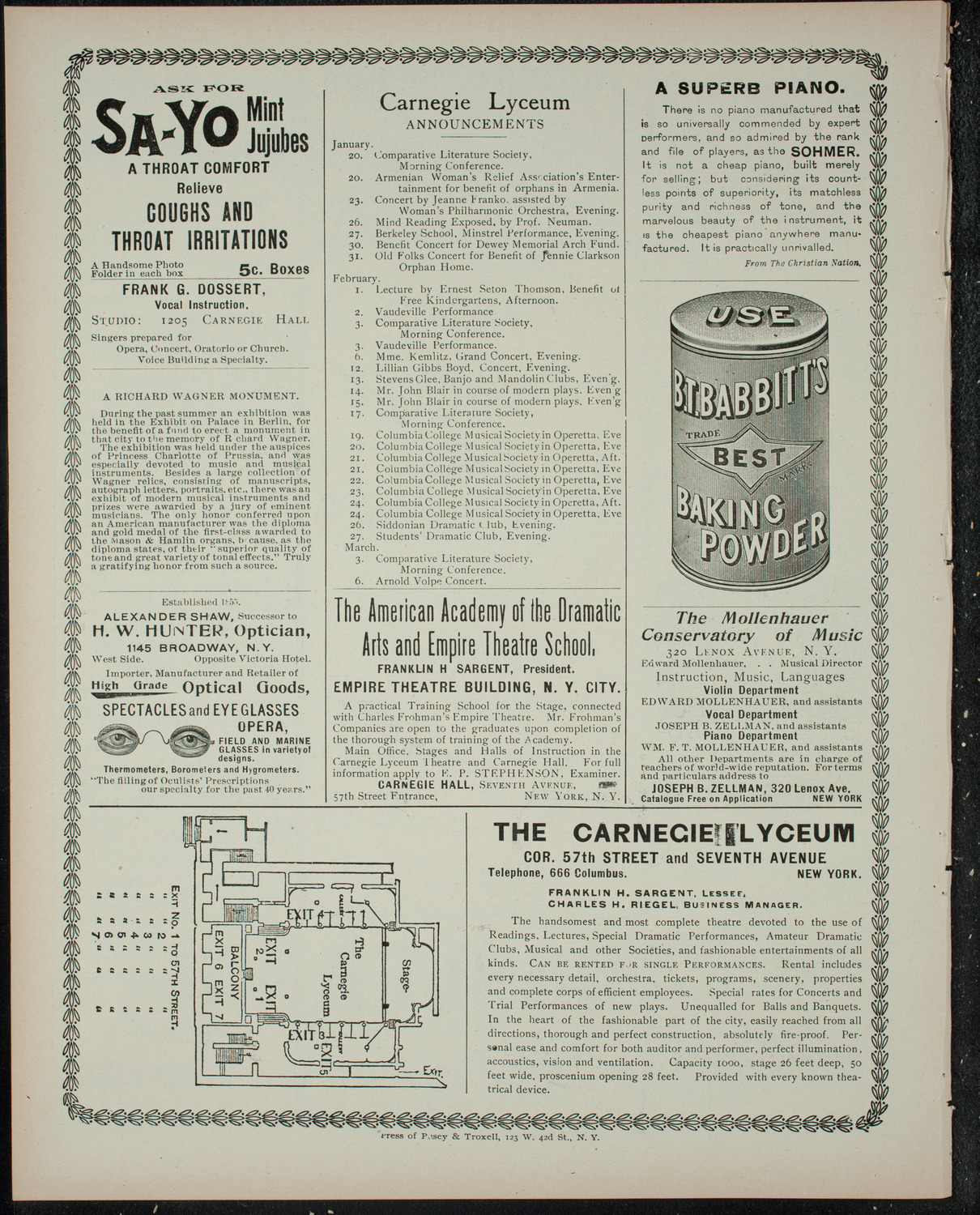 Conceptually similarMr. John Blair's Course of Modern Plays, January 18, 1900, program page 2 Mr. John Blair's Course of Modern Plays, January 18, 1900, program page 1 Mr. John Blair's Course of Modern Plays, January 18, 1900, program page 3 Mr. John Blair's Course of Modern Plays, January 17, 1900, program page 4 Mr. John Blair's Course of Modern Plays, January 17, 1900, program page 3 Mr. John Blair's Course of Modern Plays, January 17, 1900, program page 1 Mr. John Blair's Course of Modern Plays, January 17, 1900, program page 2 Mr. John Blair's Course of Modern Plays, December 21, 1899, program page 4 Mr. John Blair's Course of Modern Plays, November 15, 1899, program page 4 View MoreYour right to access the Digital Collections is subject to these Terms and Conditions.CH196727 Mr. John Blair's Course of Modern Plays, January 18, 1900, program page 4CONTENT TYPE: program pageSEASON: 1899-1900Date: January 18, 1900 YEAR: 1900 Credit: Courtesy of Carnegie Hall Archives Source name: Carnegie Hall Rose ArchivesDepartment: Rose Museum and ArchivesCollection: Programs CollectionPlace: New York, NY LANGUAGE: English Size: 3702px × 4588px (~48 MB) RIGHTS STATEMENT: NO COPYRIGHT - UNITED STATESCarnegie Hall believes that this item is in the public domain under the laws of the United States, but a determination was not made as to its copyright status under the copyright laws of other countries. The item may not be in the public domain under the laws of other countries. Read full Rights StatementThough not required, if you want to credit us as the source, please use the statement "Courtesy of Carnegie Hall Rose Archives" and provide a link back to the item on our Digital Collections site. Doing so helps us track how our collection is used and helps justify freely releasing even more content in the future. Thursday, January 18, 1900 at 8:00PM SEASON: 1899-1900VENUE: Carnegie LyceumDownloadRelated materials: View MorePDFComplete program of Play: The Master Builder, January 18, 1900 Mr. John Blair's Course of Modern Plays, January 18, 1900, program page 3 Mr. John Blair's Course of Modern Plays, January 18, 1900, program page 2 Mr. John Blair's Course of Modern Plays, January 18, 1900, program page 1 The Master Builder RELATED: Carnegie Hall Programs