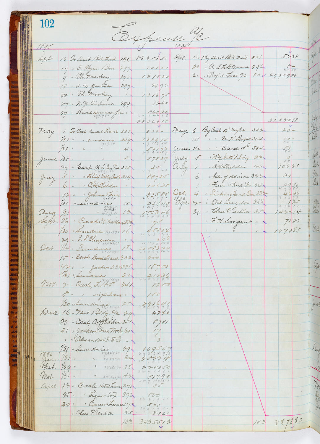 Conceptually similarMusic Hall Accounting Ledger, volume 1, page 322 Music Hall Accounting Ledger, volume 1, page 359 Music Hall Accounting Ledger, volume 1, page 192 Music Hall Accounting Ledger, volume 1, page 191 Music Hall Accounting Ledger, volume 1, page 248 Music Hall Accounting Ledger, volume 1, page 285 Music Hall Accounting Ledger, volume 1, page 312 Music Hall Accounting Ledger, volume 1, page 173 Music Hall Accounting Ledger, volume 1, page 206 View MoreYour right to access the Digital Collections is subject to these Terms and Conditions.CH1687999 Music Hall Accounting Ledger, volume 1, page 102CONTENT TYPE: accounting ledger pageNames: Music Hall Company of New York, Ltd.Date: 1895-1896 Credit: From The New York Public Library / Courtesy of Carnegie Hall Archives. Source name: Carnegie Hall Rose ArchivesDepartment: Rose Museum and ArchivesCollection: Music Hall Company of New York Accounting Ledger CollectionPlace: New York, NY LANGUAGE: English Size: 6651px × 9210px (~175 MB) RIGHTS STATEMENT: NO COPYRIGHT - UNITED STATESCarnegie Hall believes that this item is in the public domain under the laws of the United States, but a determination was not made as to its copyright status under the copyright laws of other countries. The item may not be in the public domain under the laws of other countries. Read full Rights StatementThough not required, if you want to credit us as the source, please use the statement "Courtesy of Carnegie Hall Rose Archives" and provide a link back to the item on our Digital Collections site. Doing so helps us track how our collection is used and helps justify freely releasing even more content in the future. DownloadRelated materials: View MorePDFThe Music Hall Company of N.Y. Accounting Ledger: Volume 1, 1889-1898 Music Hall Accounting Ledger, volume 1, spine Music Hall Accounting Ledger, volume 1, back endpaper 6 Music Hall Accounting Ledger, volume 1, back endpaper 4 Music Hall Accounting Ledger, volume 1, page 381 Music Hall Accounting Ledger, volume 1, page 379 RELATED: Music Hall Company of New York Accounting Ledgers