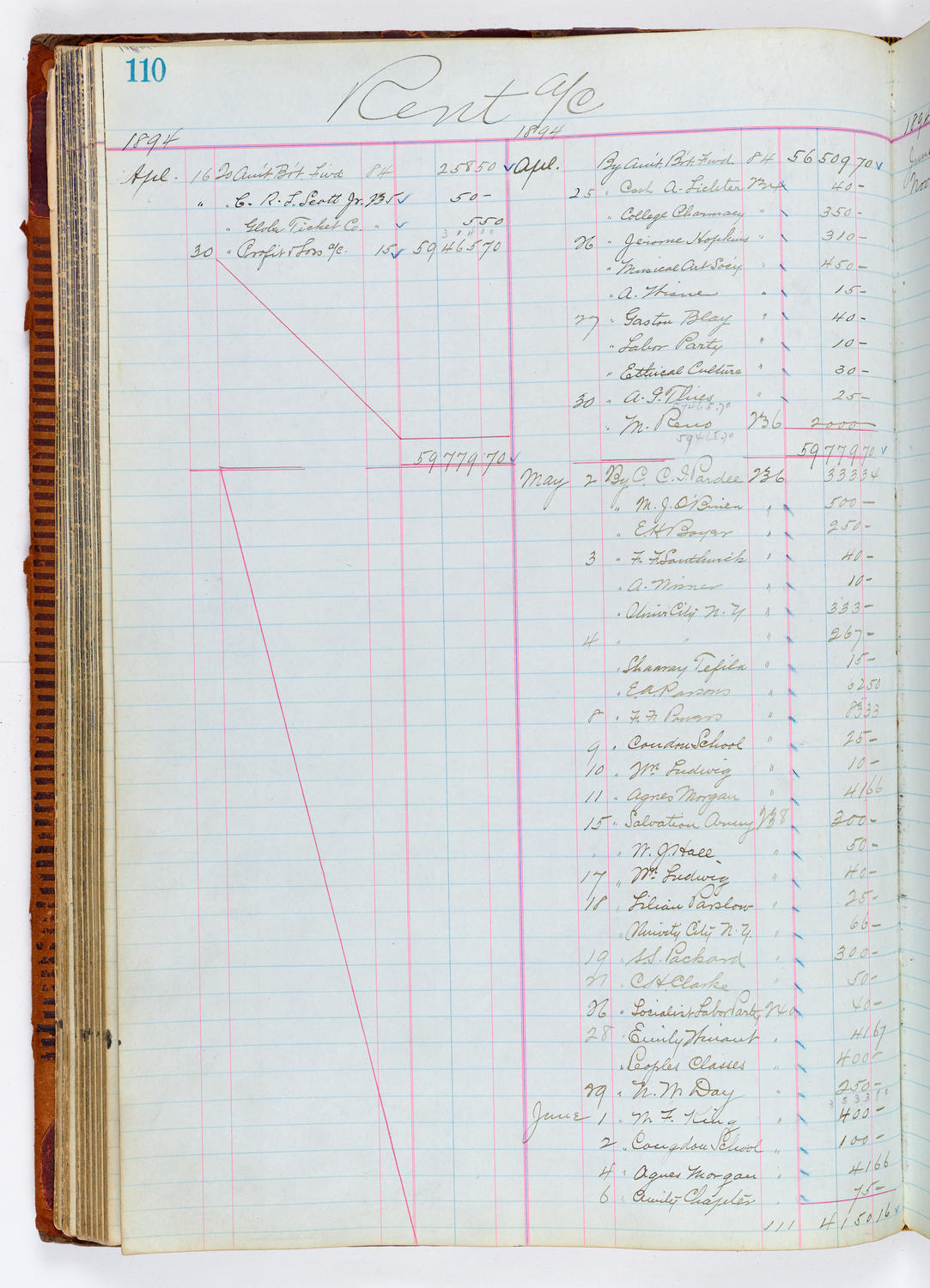 Conceptually similarMusic Hall Accounting Ledger, volume 1, page 69 Music Hall Accounting Ledger, volume 1, page 80 Music Hall Accounting Ledger, volume 1, page 84 Music Hall Accounting Ledger, volume 1, page 78 Music Hall Accounting Ledger, volume 1, page 161 Music Hall Accounting Ledger, volume 1, page 74 Music Hall Accounting Ledger, volume 1, page 115 Music Hall Accounting Ledger, volume 1, page 83 Music Hall Accounting Ledger, volume 1, page 44 View MoreYour right to access the Digital Collections is subject to these Terms and Conditions.CH1687998 Music Hall Accounting Ledger, volume 1, page 110CONTENT TYPE: accounting ledger pageNames: Music Hall Company of New York, Ltd.SEASON: 1893-1894Date: April - June, 1894 YEAR: 1894 Credit: From The New York Public Library / Courtesy of Carnegie Hall Archives. Source name: Carnegie Hall Rose ArchivesDepartment: Rose Museum and ArchivesCollection: Music Hall Company of New York Accounting Ledger CollectionPlace: New York, NY LANGUAGE: English Size: 6651px × 9210px (~175 MB) RIGHTS STATEMENT: NO COPYRIGHT - UNITED STATESCarnegie Hall believes that this item is in the public domain under the laws of the United States, but a determination was not made as to its copyright status under the copyright laws of other countries. The item may not be in the public domain under the laws of other countries. Read full Rights StatementThough not required, if you want to credit us as the source, please use the statement "Courtesy of Carnegie Hall Rose Archives" and provide a link back to the item on our Digital Collections site. Doing so helps us track how our collection is used and helps justify freely releasing even more content in the future. DownloadRelated materials: View MorePDFThe Music Hall Company of N.Y. Accounting Ledger: Volume 1, 1889-1898 Music Hall Accounting Ledger, volume 1, spine Music Hall Accounting Ledger, volume 1, back endpaper 6 Music Hall Accounting Ledger, volume 1, back endpaper 4 Music Hall Accounting Ledger, volume 1, page 381 Music Hall Accounting Ledger, volume 1, page 379 RELATED: Music Hall Company of New York Accounting Ledgers