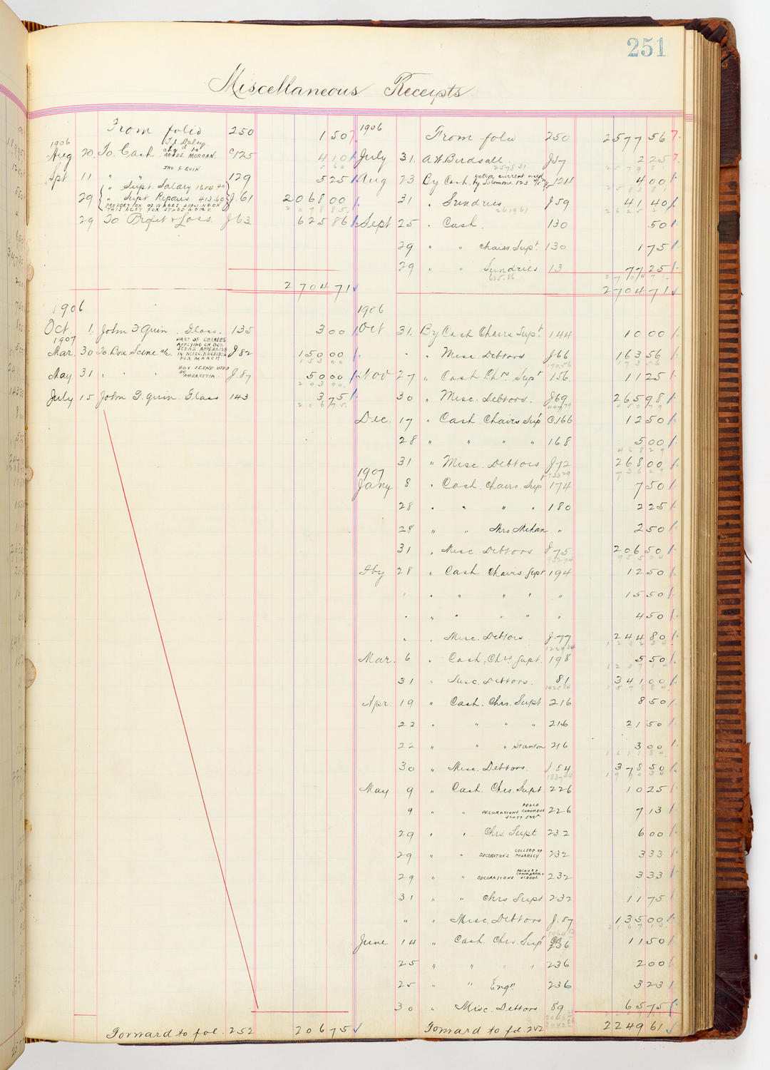 Conceptually similarMusic Hall Accounting Ledger, volume 3, page 166 Music Hall Accounting Ledger, volume 3, page 178 Music Hall Accounting Ledger, volume 3, page 192 Music Hall Accounting Ledger, volume 3, page 116 Music Hall Accounting Ledger, volume 1, page 251 Music Hall Accounting Ledger, volume 3, page 312 Music Hall Accounting Ledger, volume 3, page 299 Music Hall Accounting Ledger, volume 3, page 309 Music Hall Accounting Ledger, volume 3, page 46 View MoreYour right to access the Digital Collections is subject to these Terms and Conditions.CH1689985 Music Hall Accounting Ledger, volume 3, page 251CONTENT TYPE: accounting ledger pageNames: Music Hall Company of New York, Ltd.Date: 1906-1907 Credit: From The New York Public Library / Courtesy of Carnegie Hall Archives. Source name: Carnegie Hall Rose ArchivesDepartment: Rose Museum and ArchivesCollection: Music Hall Company of New York Accounting Ledger CollectionPlace: New York, NY LANGUAGE: English Size: 6752px × 9374px (~181 MB) RIGHTS STATEMENT: NO COPYRIGHT - UNITED STATESCarnegie Hall believes that this item is in the public domain under the laws of the United States, but a determination was not made as to its copyright status under the copyright laws of other countries. The item may not be in the public domain under the laws of other countries. Read full Rights StatementThough not required, if you want to credit us as the source, please use the statement "Courtesy of Carnegie Hall Rose Archives" and provide a link back to the item on our Digital Collections site. Doing so helps us track how our collection is used and helps justify freely releasing even more content in the future. DownloadRelated materials: View MorePDFThe Music Hall Company of N.Y. Accounting Ledger: Volume 3, 1898-1909 Music Hall Accounting Ledger, volume 3, spine Music Hall Accounting Ledger, volume 3, inside back cover page 2 Music Hall Accounting Ledger, volume 3, inside back cover page 1 Music Hall Accounting Ledger, volume 3, back cover Music Hall Accounting Ledger, volume 3, back endpaper 2 RELATED: Music Hall Company of New York Accounting Ledgers