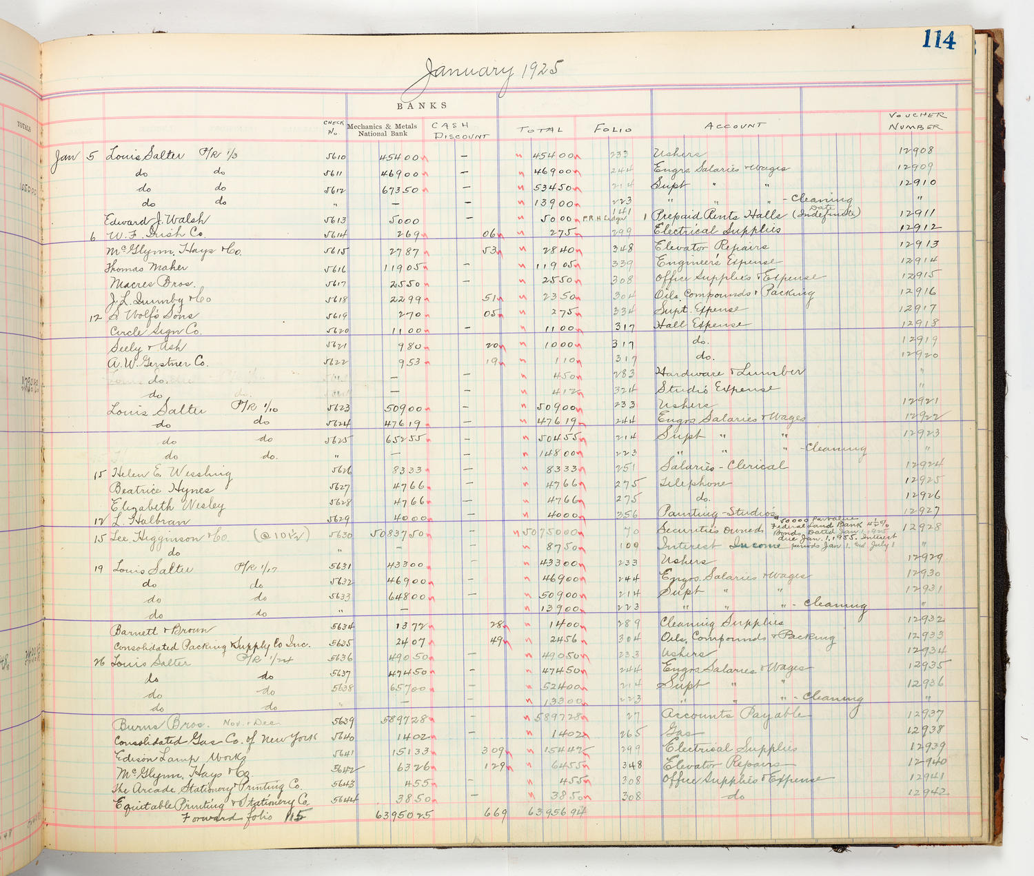 Conceptually similarMusic Hall Accounting Ledger Cash Book, volume 8, page 115b Music Hall Accounting Ledger Cash Book, volume 8, page 114a Music Hall Accounting Ledger Cash Book, volume 8, page 120a Music Hall Accounting Ledger Cash Book, volume 8, page 121a Music Hall Accounting Ledger Cash Book, volume 8, page 31b Music Hall Accounting Ledger Cash Book, volume 8, page 135b Music Hall Accounting Ledger Cash Book, volume 8, page 115a Music Hall Accounting Ledger Cash Book, volume 8, page 119a Music Hall Accounting Ledger Cash Book, volume 8, page 85b View MoreYour right to access the Digital Collections is subject to these Terms and Conditions.CH1699532 Music Hall Accounting Ledger Cash Book, volume 8, page 114bCONTENT TYPE: accounting ledger pageNames: Music Hall Company of New York, Ltd.SEASON: 1924-1925Date: January 5-26, 1925 YEAR: 1925 Credit: From The New York Public Library / Courtesy of Carnegie Hall Archives. Source name: Carnegie Hall Rose ArchivesDepartment: Rose Museum and ArchivesCollection: Music Hall Company of New York Accounting Ledger CollectionPlace: New York, NY LANGUAGE: English Size: 8383px × 7104px (~170 MB) RIGHTS STATEMENT: NO COPYRIGHT - UNITED STATESCarnegie Hall believes that this item is in the public domain under the laws of the United States, but a determination was not made as to its copyright status under the copyright laws of other countries. The item may not be in the public domain under the laws of other countries. Read full Rights StatementThough not required, if you want to credit us as the source, please use the statement "Courtesy of Carnegie Hall Rose Archives" and provide a link back to the item on our Digital Collections site. Doing so helps us track how our collection is used and helps justify freely releasing even more content in the future. DownloadRelated materials: View MorePDFThe Music Hall Company of N.Y. Accounting Ledger Cash Book: Volume 8, 1923-1926 Music Hall Accounting Ledger Cash Book, volume 8, spine Music Hall Accounting Ledger Cash Book, volume 8, back cover Music Hall Accounting Ledger Cash Book, volume 8, page 149a Music Hall Accounting Ledger Cash Book, volume 8, page 145a Music Hall Accounting Ledger Cash Book, volume 8, inside front cover RELATED: Music Hall Company of New York Accounting Ledgers