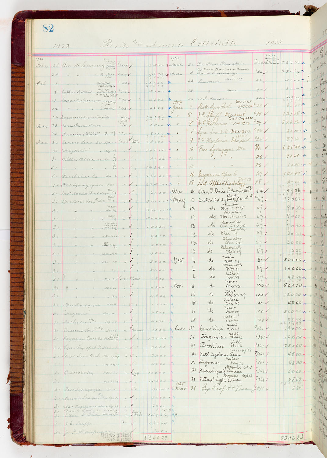 Conceptually similarMusic Hall Accounting Ledger Journal, volume 6, page 151 Music Hall Accounting Ledger Journal, volume 6, page 251 Music Hall Accounting Ledger Journal, volume 6, page 381 Music Hall Accounting Ledger Journal, volume 6, page 59 Music Hall Accounting Ledger Journal, volume 6, page 63 Music Hall Accounting Ledger Journal, volume 6, page 169 Music Hall Accounting Ledger Journal, volume 6, page 295 Music Hall Accounting Ledger Journal, volume 6, page 395 Music Hall Accounting Ledger Journal, volume 6, page 397 View MoreYour right to access the Digital Collections is subject to these Terms and Conditions.CH1698222 Music Hall Accounting Ledger Journal, volume 6, page 82CONTENT TYPE: accounting ledger pageNames: Music Hall Company of New York, Ltd.Date: 1923-1925 Credit: From The New York Public Library / Courtesy of Carnegie Hall Archives. Source name: Carnegie Hall Rose ArchivesDepartment: Rose Museum and ArchivesCollection: Music Hall Company of New York Accounting Ledger CollectionPlace: New York, NY LANGUAGE: English Size: 6723px × 9409px (~180 MB) RIGHTS STATEMENT: NO COPYRIGHT - UNITED STATESCarnegie Hall believes that this item is in the public domain under the laws of the United States, but a determination was not made as to its copyright status under the copyright laws of other countries. The item may not be in the public domain under the laws of other countries. Read full Rights StatementThough not required, if you want to credit us as the source, please use the statement "Courtesy of Carnegie Hall Rose Archives" and provide a link back to the item on our Digital Collections site. Doing so helps us track how our collection is used and helps justify freely releasing even more content in the future. DownloadRelated materials: View MorePDFThe Music Hall Company of N.Y. Accounting Ledger Journal: Volume 6, 1922-1931 Music Hall Accounting Ledger Journal, volume 6, spine Music Hall Accounting Ledger Journal, volume 6, page 377 Music Hall Accounting Ledger Journal, volume 6, page 361 Music Hall Accounting Ledger Journal, volume 6, page 369 Music Hall Accounting Ledger Journal, volume 6, page 375 RELATED: Music Hall Company of New York Accounting Ledgers