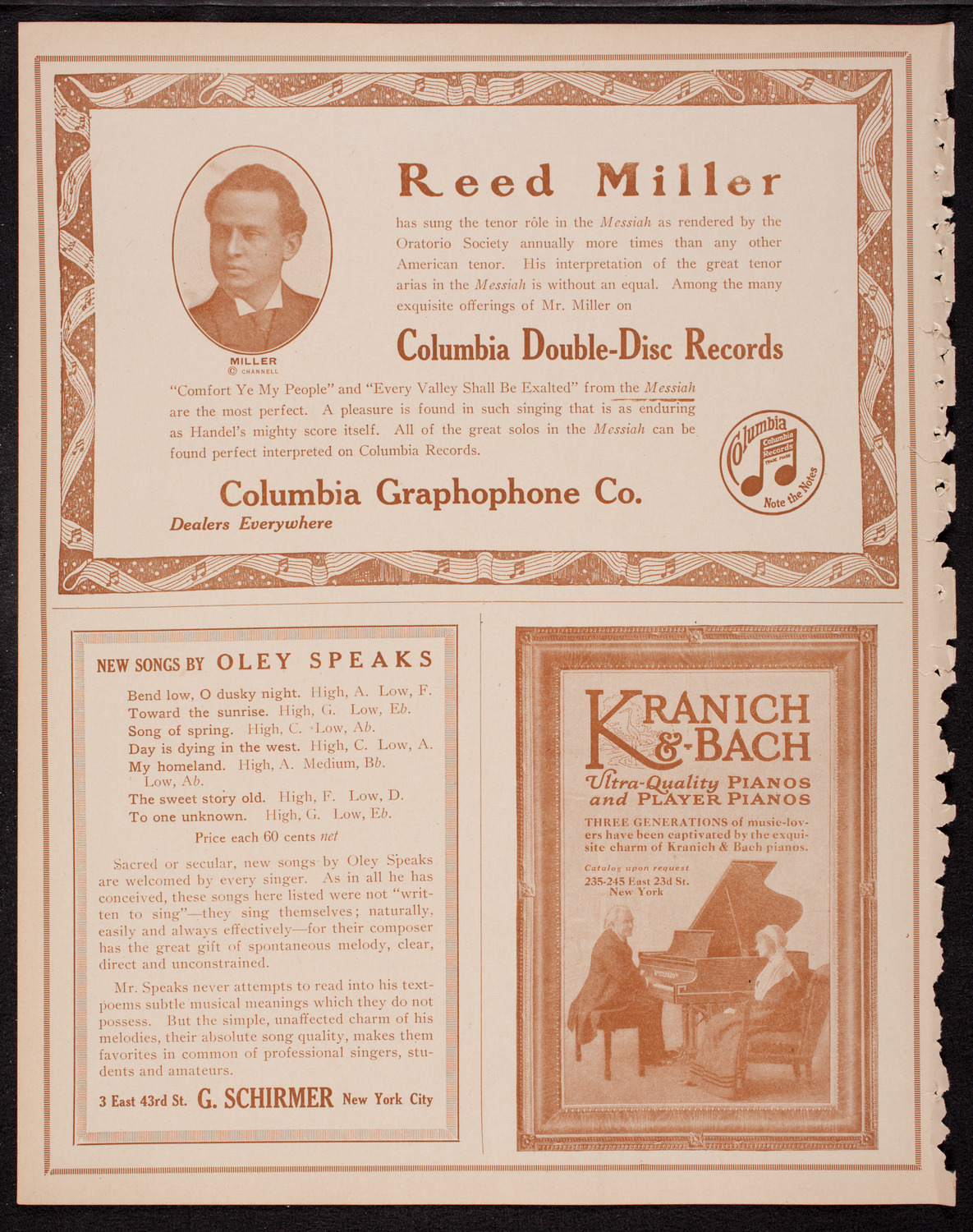 Conceptually similarOratorio Society of New York, December 30, 1916, program page 5 Oratorio Society of New York, December 30, 1916, program page 3 Oratorio Society of New York, December 30, 1916, program page 12 Oratorio Society of New York, December 6, 1916, program page 2 Oratorio Society of New York, December 6, 1916, program page 10 Oratorio Society of New York, December 6, 1916, program page 6 Oratorio Society of New York, December 30, 1916, program page 10 Oratorio Society of New York, December 30, 1916, program page 9 Oratorio Society of New York, December 30, 1916, program page 1 View MoreYour right to access the Digital Collections is subject to these Terms and Conditions.CH1138436 Oratorio Society of New York, December 30, 1916, program page 6CONTENT TYPE: program pageSEASON: 1916-1917Date: December 30, 1916 YEAR: 1916 Credit: Courtesy of Carnegie Hall Archives Source name: Carnegie Hall Rose ArchivesDepartment: Rose Museum and ArchivesCollection: Programs CollectionPlace: New York, NY LANGUAGE: English Size: 3609px × 4569px (~47 MB) RIGHTS STATEMENT: NO COPYRIGHT - UNITED STATESCarnegie Hall believes that this item is in the public domain under the laws of the United States, but a determination was not made as to its copyright status under the copyright laws of other countries. The item may not be in the public domain under the laws of other countries. Read full Rights StatementThough not required, if you want to credit us as the source, please use the statement "Courtesy of Carnegie Hall Rose Archives" and provide a link back to the item on our Digital Collections site. Doing so helps us track how our collection is used and helps justify freely releasing even more content in the future. Saturday, December 30, 1916 at 2:15PM SEASON: 1916-1917VENUE: Main HallDownloadRelated materials: View MorePDFComplete program of Oratorio Society of New York, December 30, 1916 Oratorio Society of New York, December 30, 1916, program page 12 Oratorio Society of New York, December 30, 1916, program page 11 Oratorio Society of New York, December 30, 1916, program page 10 Oratorio Society of New York, December 30, 1916, program page 9 Oratorio Society of New York, December 30, 1916, program page 8 RELATED: Carnegie Hall Programs